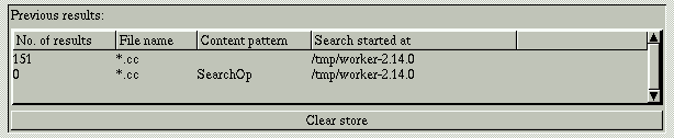 If you want to get rid of all previous results you can click on the button "Clear store". - Search refinement