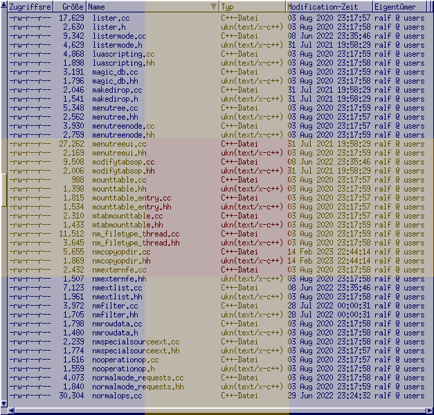 - Clicking the outer sections (blue and yellow): When clicking the right mouse button on these areas, the list view is scrolled continuously as long as the mouse button is held, either horizontally, vertically, or diagonally corresponding to the clicked section. The distance to the center defines the scrolling speed.